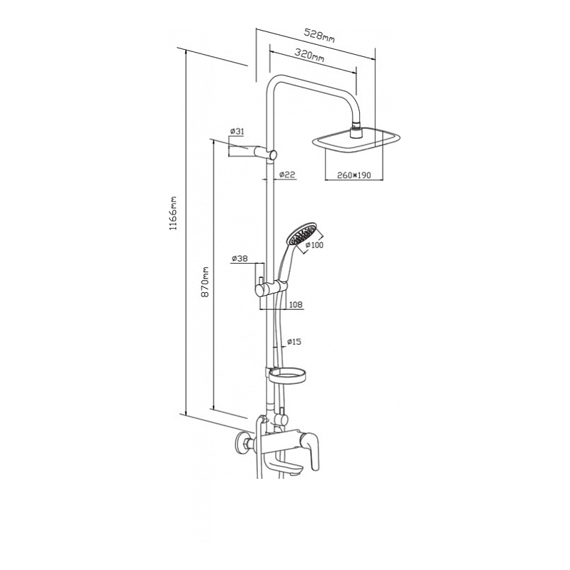 - Эффект тропического ливня: воспользуйтесь верхним душем для максимального наслаждения водными процедурами.