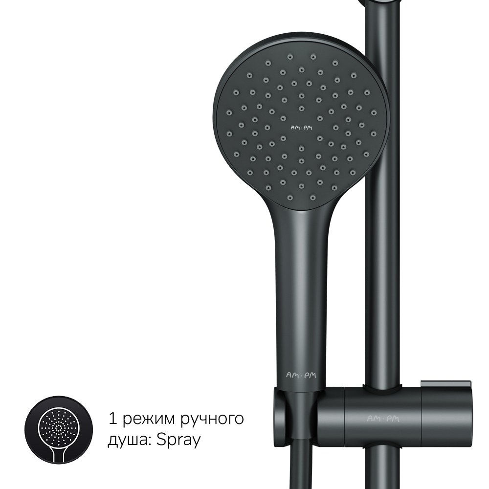 Душевая система Am.Pm Gem ручной душ 11 см 1 функция штанга 146 см верхний душ 22 см шланг 175 см черный - цена 42190 руб. Оформить заказ и купить душевой гарнитур Am.Pm Gem ручной душ 11 см 1 функция штанга 146 см верхний душ 22 см шланг 175 см черный в Москве в нашем интернет магазине можно по тел 8 (919) 991-95-00 или добавив товар в корзину.