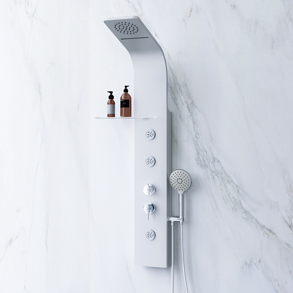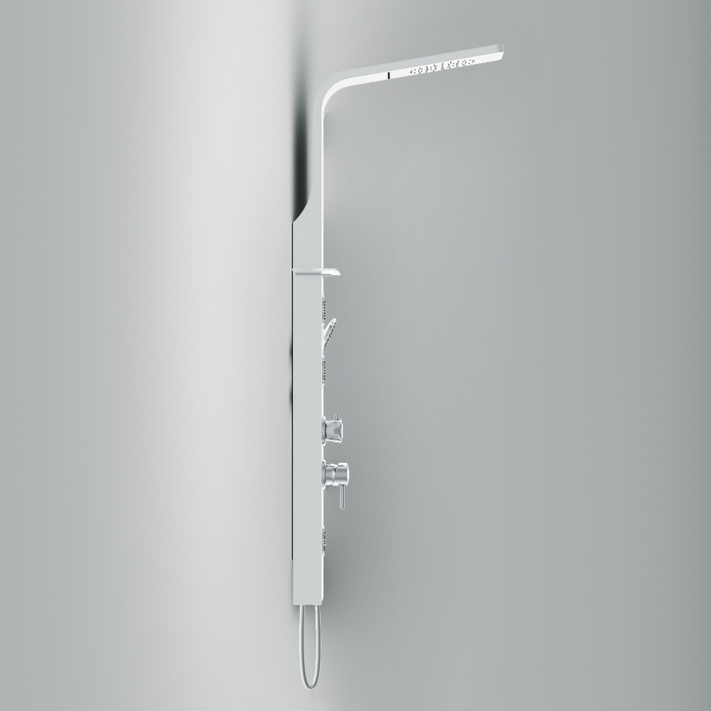 Стильная выгода: европейский дизайн в доступном сегменте.Стильная и компактная гидромассажная панель Joy подходит для установки в ванну и душевые ограждения любого типа.Продуманные детали для удобства использования: верхний душ 155 мм водопад 160 мм 3 регулируемых гидромассажных форсунки полка из оргстекла (лево/правосторонний монтаж) смеситель с переключателем режимов ручной душ 100 мм (1 режим) с держателем и шлангом 1500 мм.Корпус выполнен из нержавеющей стали.