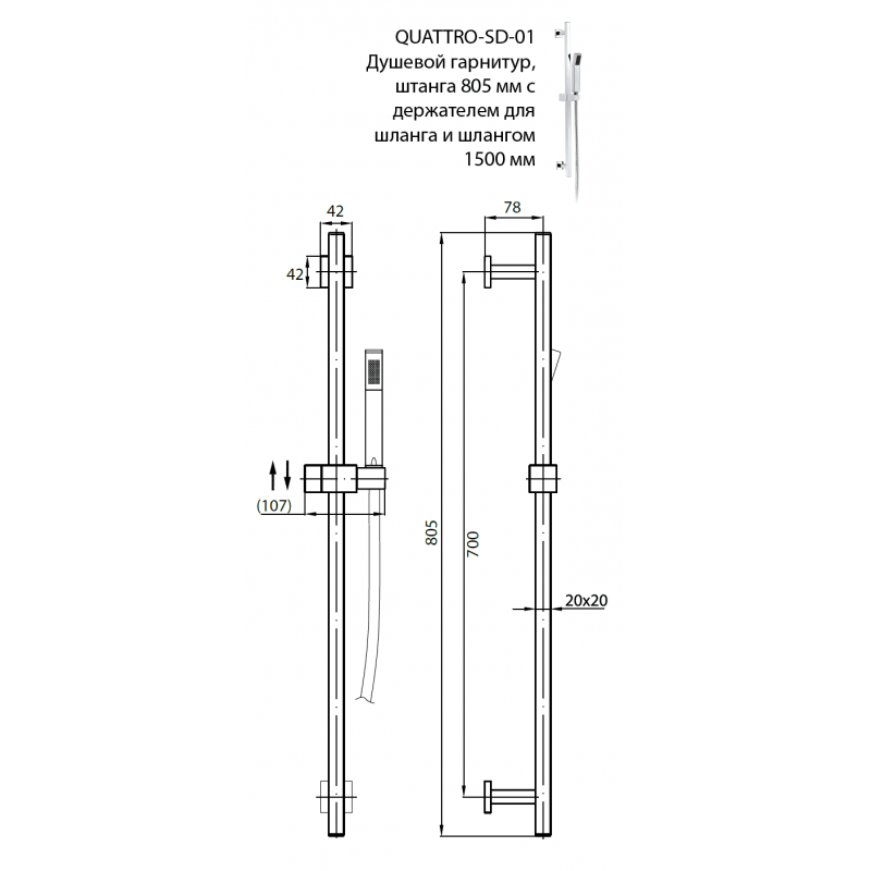 Душевая система Cezares QUATTRO-C-SD-01 - цена 9970 руб. Оформить заказ и купить душевой гарнитур Cezares QUATTRO-C-SD-01 в Москве в нашем интернет магазине можно по тел 8 (919) 991-95-00 или добавив товар в корзину.