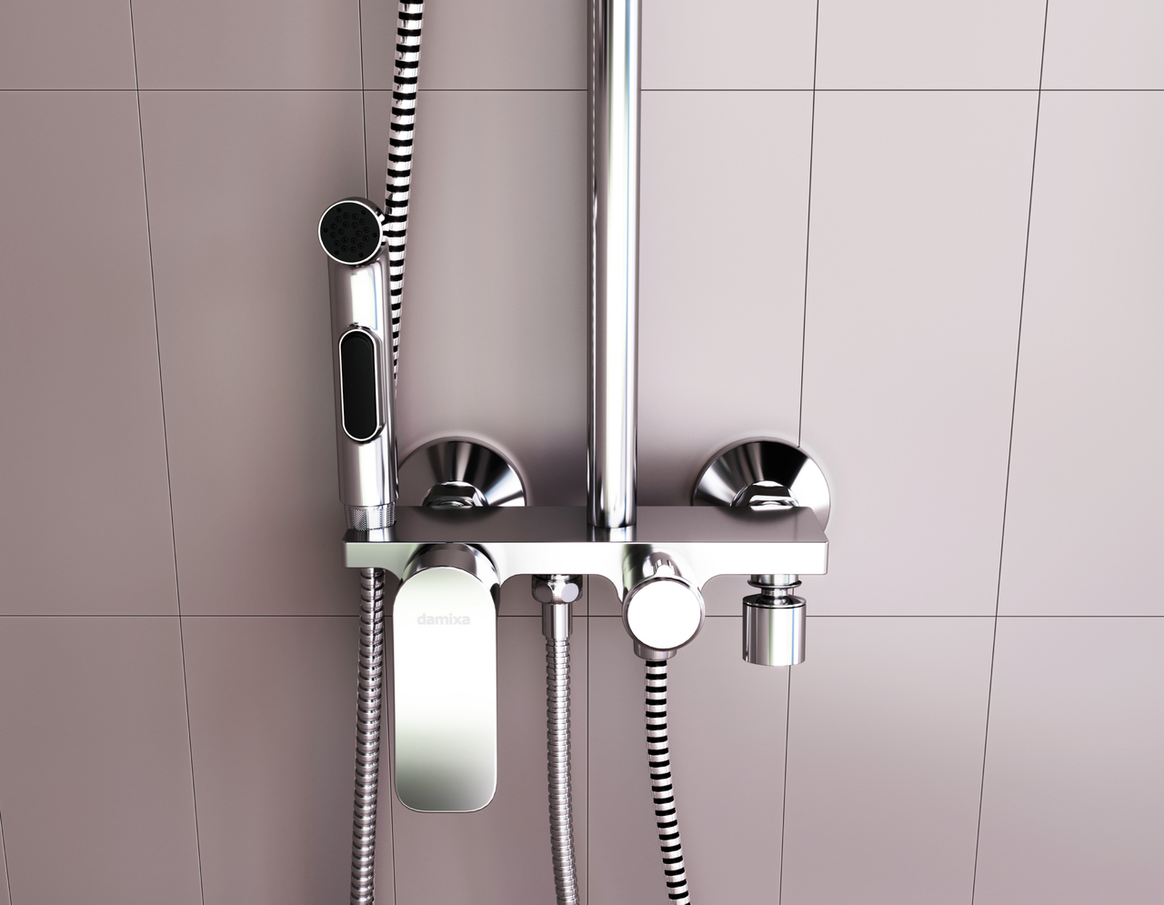 Душевая система Damixa Apollo ручной душ 12 см 1 режим штанга 101 см верхний душ 23 см шланг 150 см хром - цена 29990 руб. Оформить заказ и купить душевой гарнитур Damixa Apollo ручной душ 12 см 1 режим штанга 101 см верхний душ 23 см шланг 150 см хром в Москве в нашем интернет магазине можно по тел 8 (919) 991-95-00 или добавив товар в корзину.