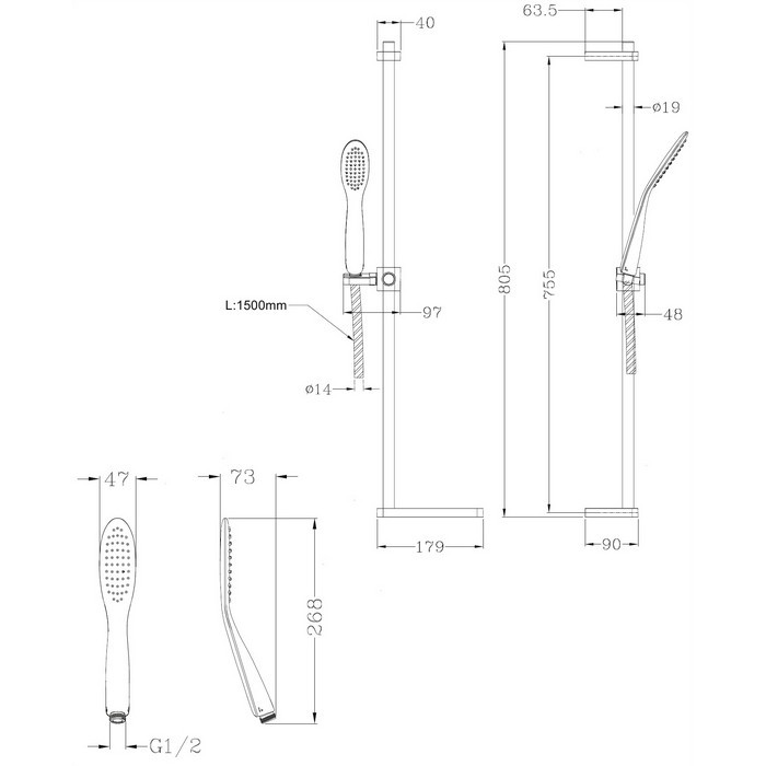 - душевой шланг в стальной оплетке, длина: 150 см;