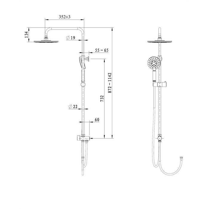 - душевая стойка с переключателем и кронштейном для монтажа верхнего душа;