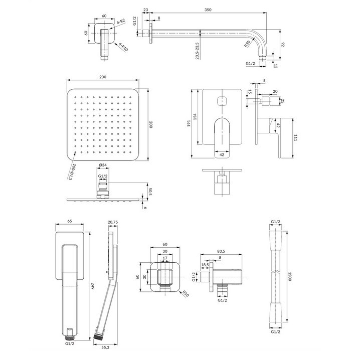- верхний душ латунный (WG220/OBL), размер: 20x20 см;