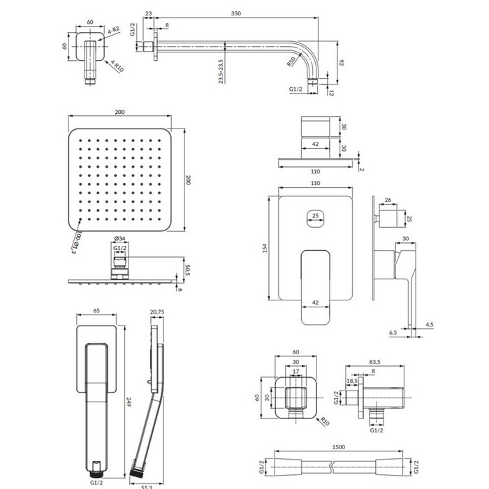 - верхний душ из нержавеющей стали (WG220/OGR), размер: 20x20 см;