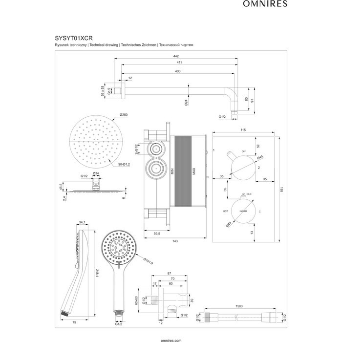 - термостатический смеситель для душа/ванны скрытого монтажа (Y1236/KCR)