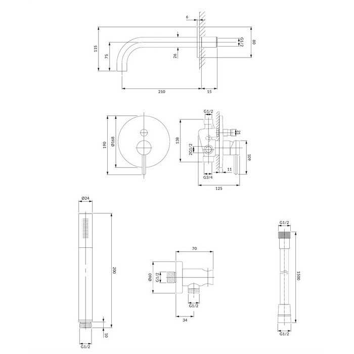 - душевой шланг в латунной оплетке (029BL), длина: 150 см;
