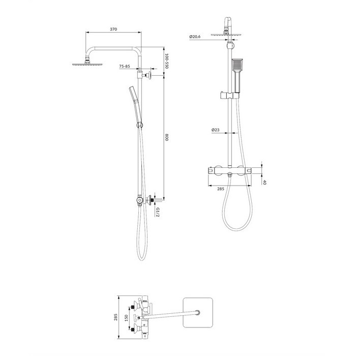 - верхний душ (WGJIMJIMBL), размер: 20x20 см, отдаленность от стены: 43 см;