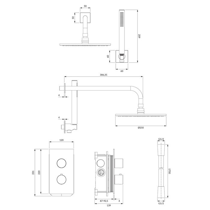 - верхний душ латунный (WG125CR), размер: ø25 см;