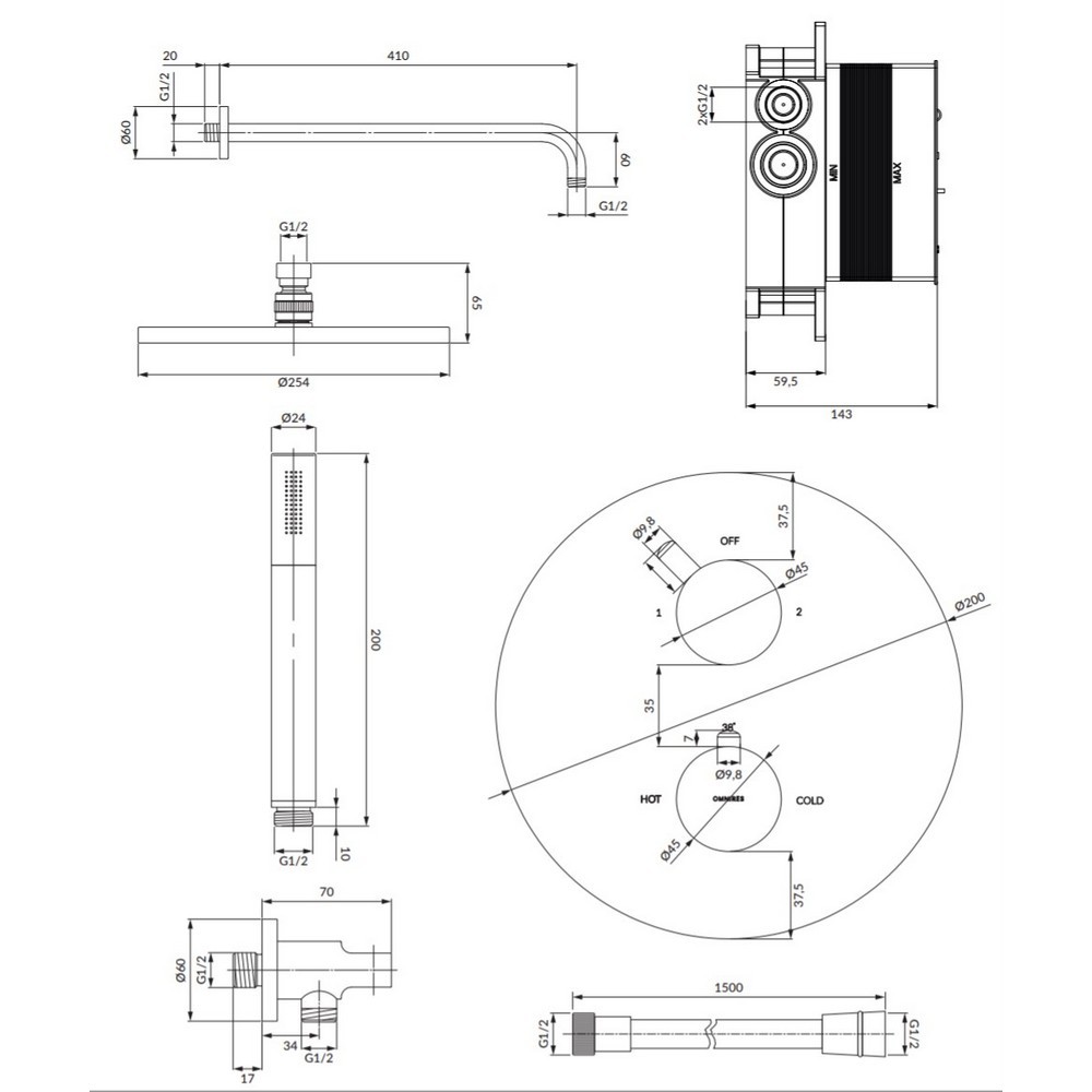 - верхний душ с кронштейном (WGSET1GLB), размер: ø25 см;