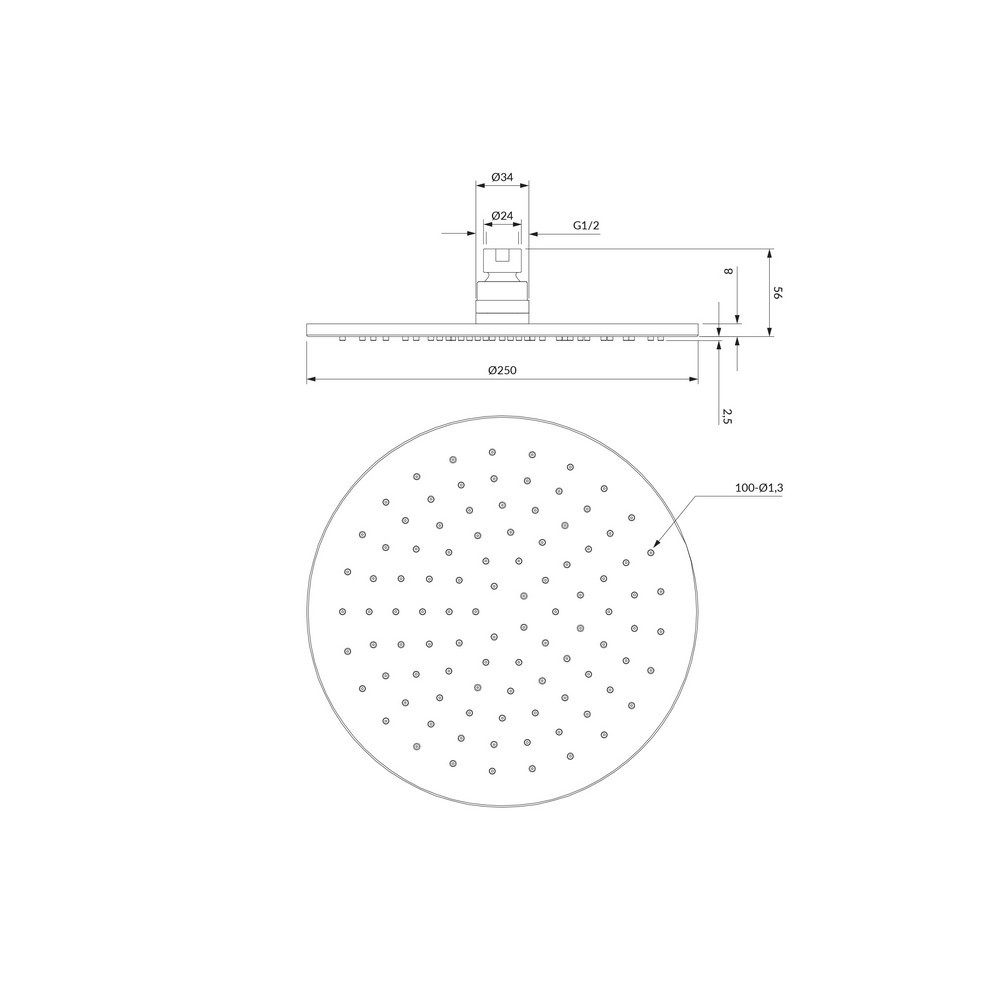 - изготовлен из латуни; - размер: ø25 см; - толщина: 0,9 см; - с 1-ой функцией; - подвод воды: 1/2”; - расход: ~22 л/мин; - покрытие PVD, которое характеризуется высокой гладкостью поверхности, прочностью и устойчивостью к механическим повреждениям.