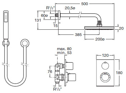 Душевая система Roca Element 5A2962C00 - цена 22512 руб. Оформить заказ и купить душевой гарнитур Roca Element 5A2962C00 в Москве в нашем интернет магазине можно по тел 8 (919) 991-95-00 или добавив товар в корзину.