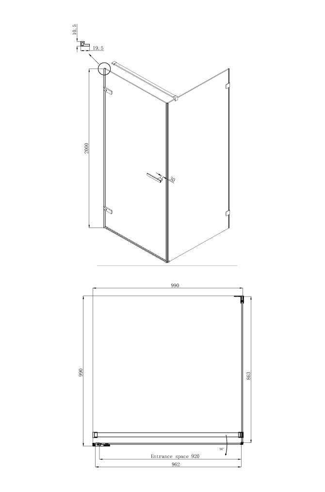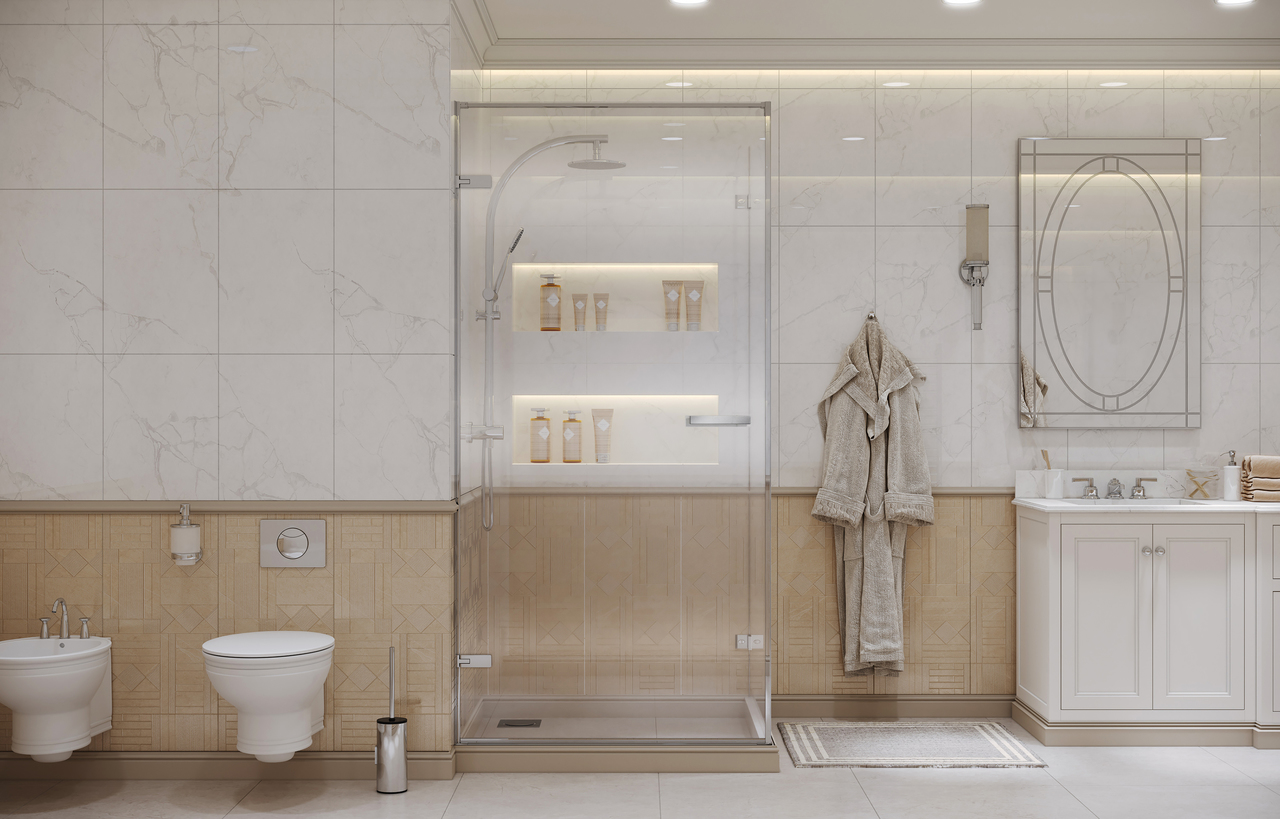 • Душевое ограждение устанавливается в облицованный керамической плиткой угол ванной комнаты.