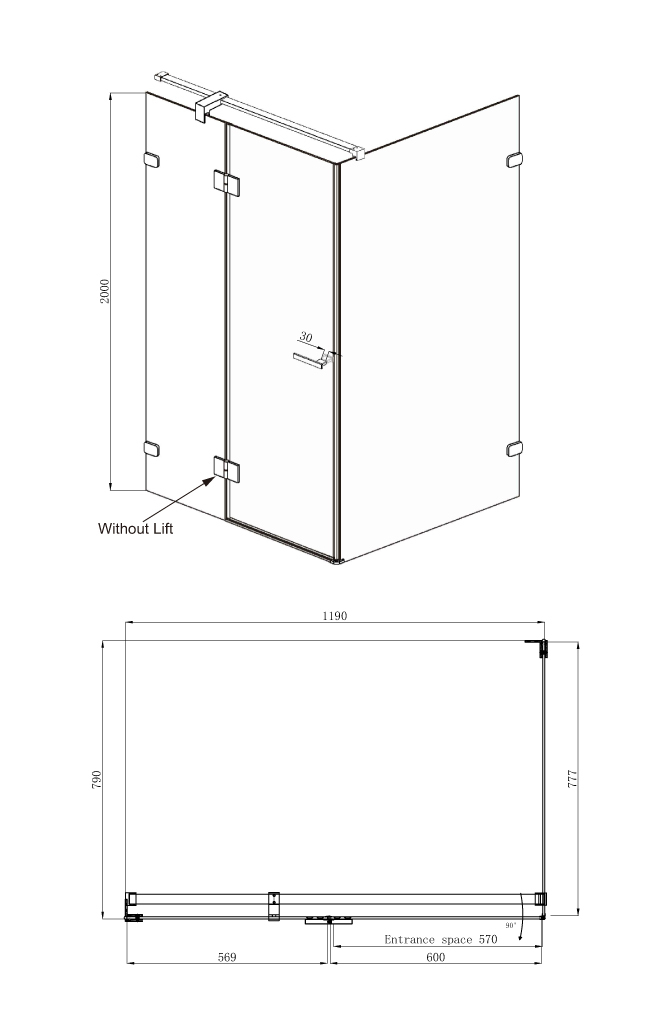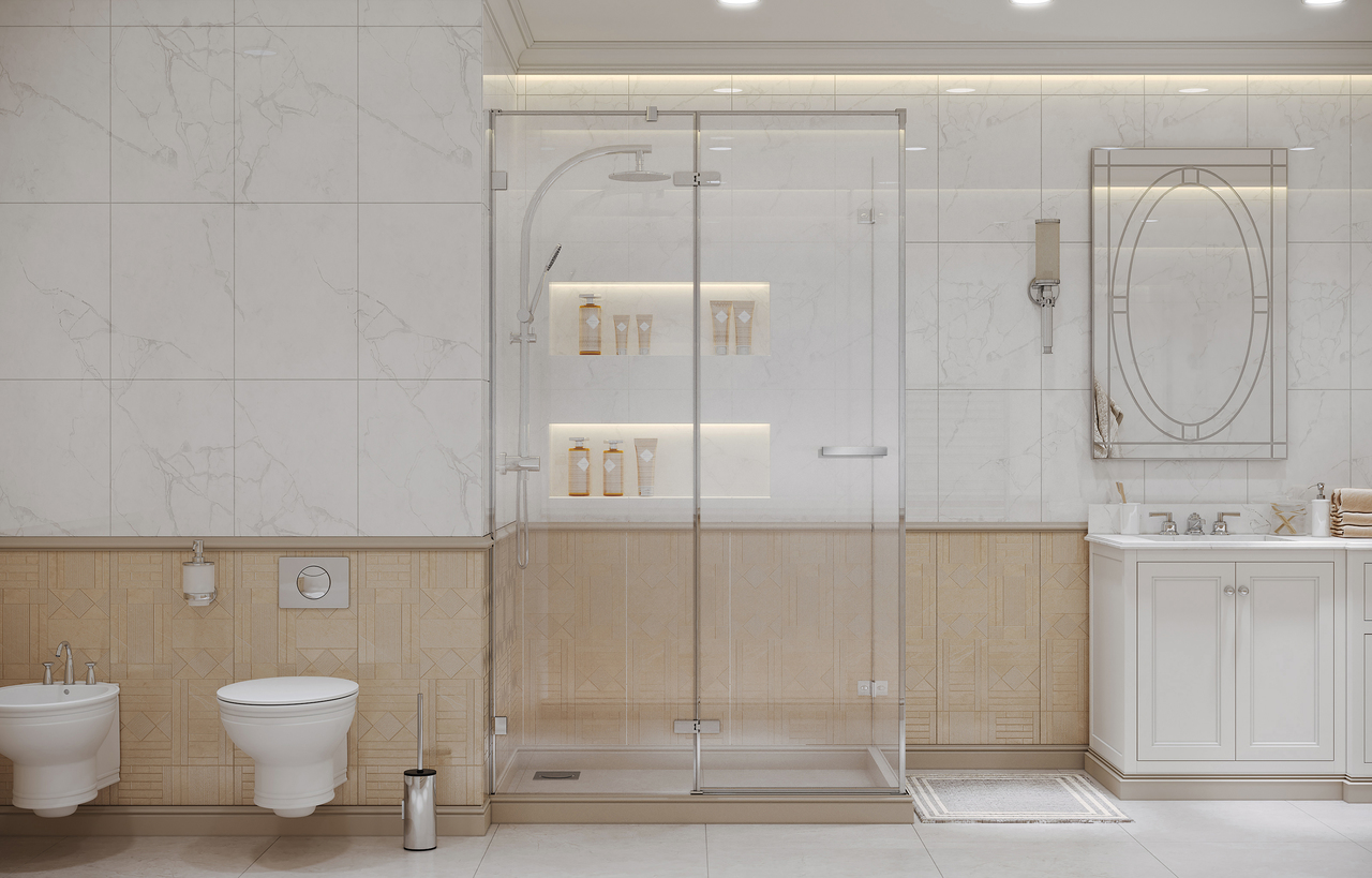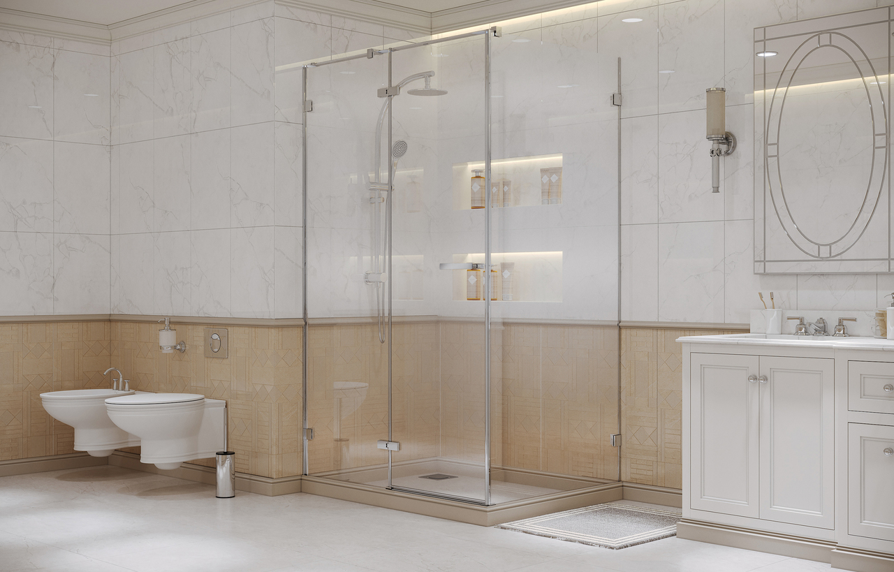 • Душевое ограждение устанавливается в облицованный керамической плиткой угол ванной комнаты.