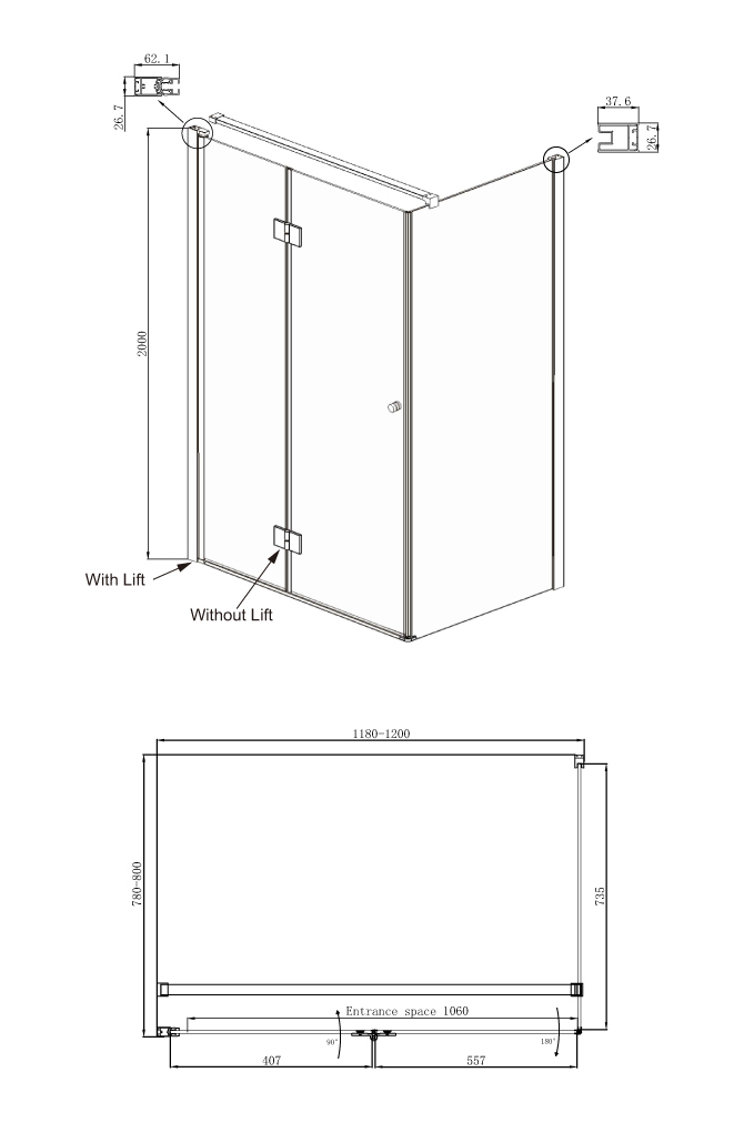 • Душевое ограждение устанавливается в облицованный керамической плиткой угол ванной комнаты.