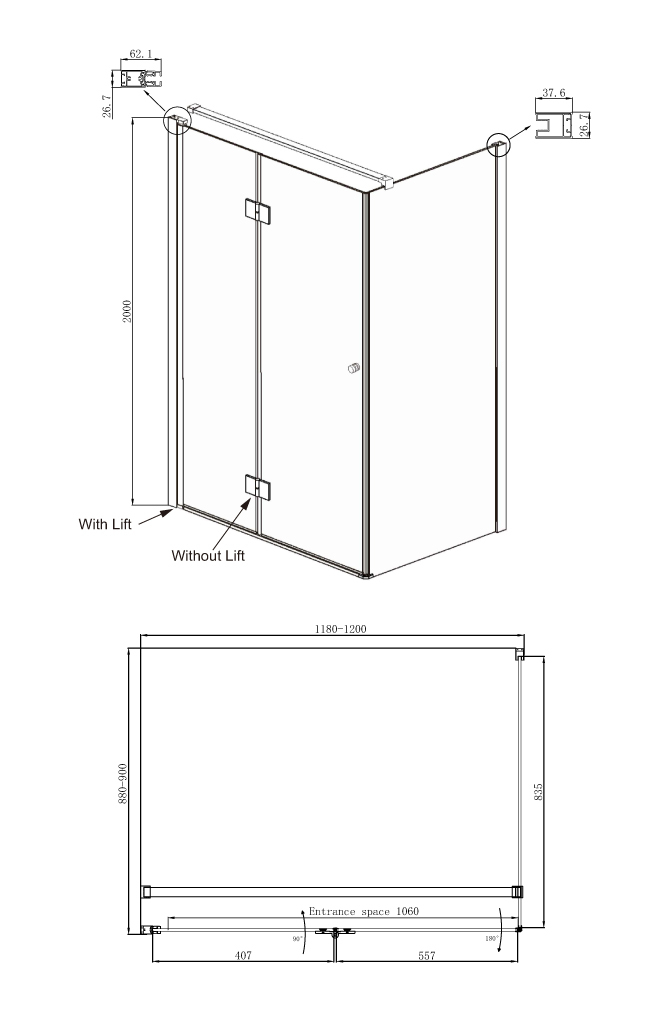 • Душевое ограждение устанавливается в облицованный керамической плиткой угол ванной комнаты.