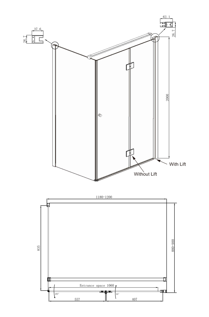 • Душевое ограждение устанавливается в облицованный керамической плиткой угол ванной комнаты.