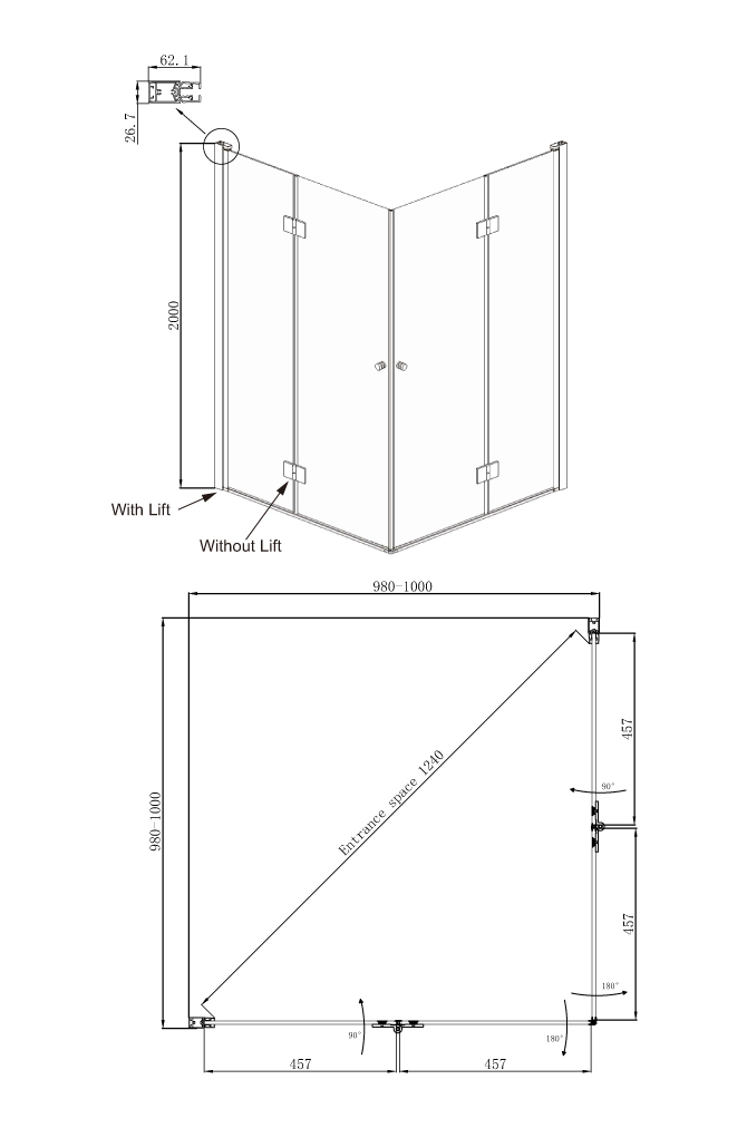 • Душевое ограждение устанавливается в облицованный керамической плиткой угол ванной комнаты.