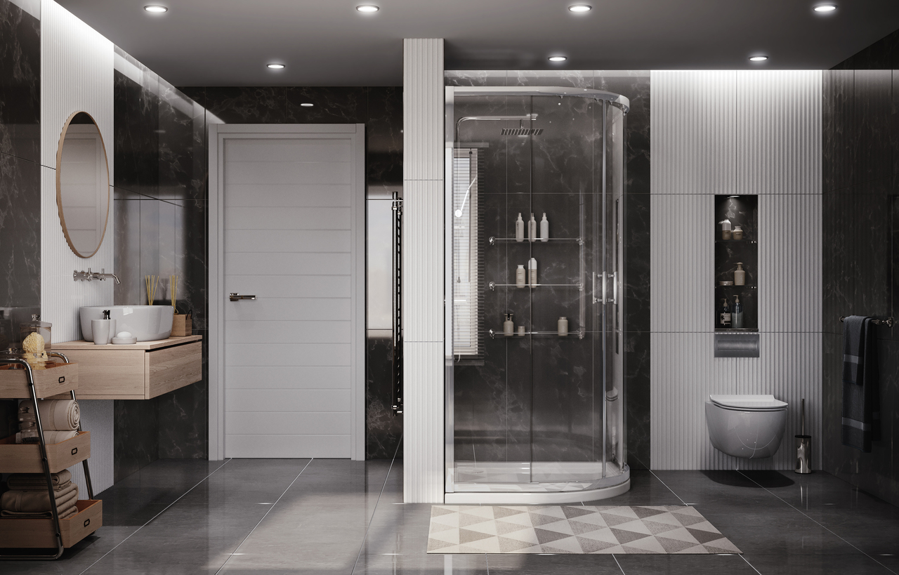 • Душевое ограждение устанавливается в облицованный керамической плиткой угол ванной комнаты.