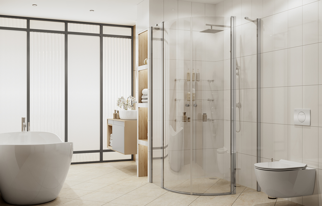 • Душевое ограждение устанавливается в облицованный керамической плиткой угол ванной комнаты.