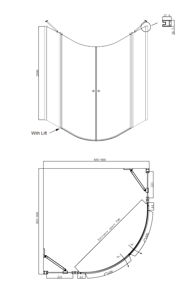 • Уплотнители обеспечивают 100% герметичность изделия, благодаря плотному соединению стекольного полотна со всеми элементами душевого ограждения.