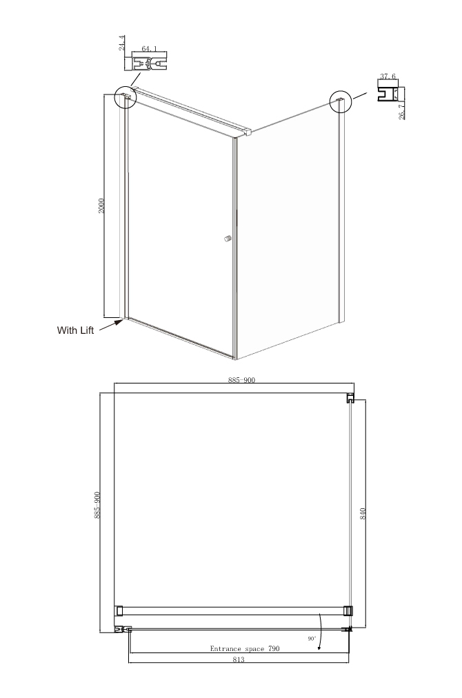 - на душевой поддон: в данном случае внешний край профиля ограждения должен располагаться на расстоянии около 10 мм от края поддона.