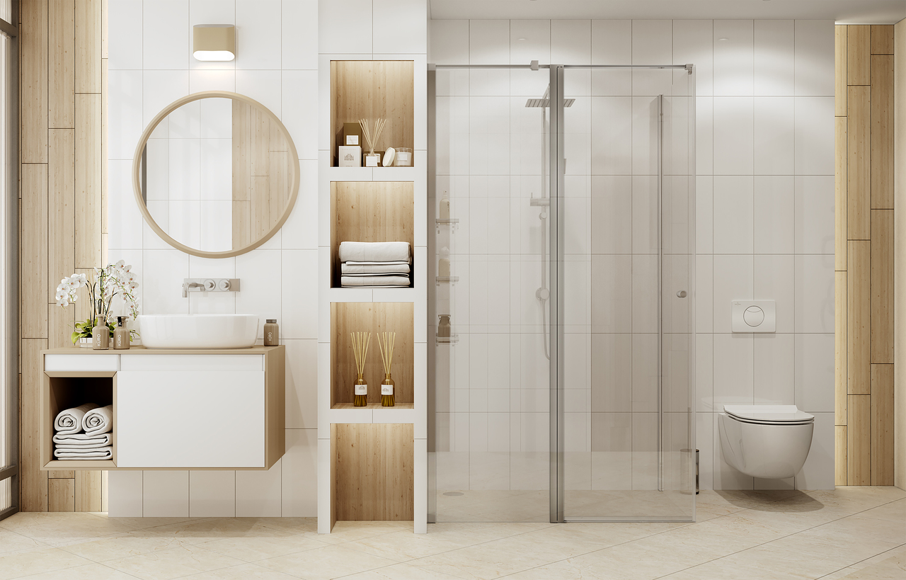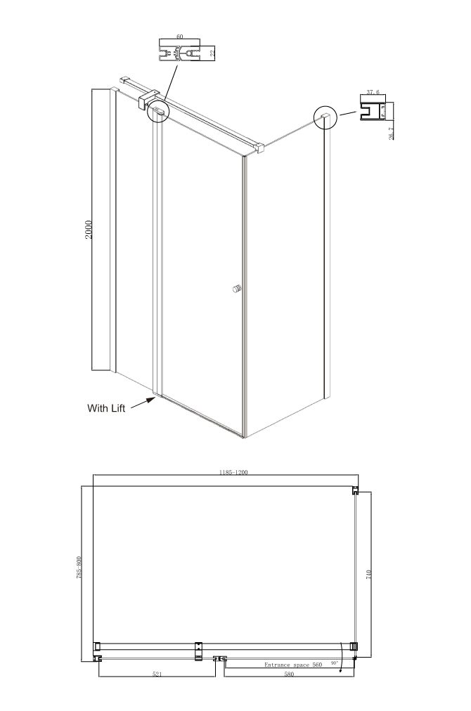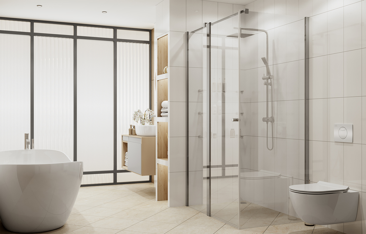 • Душевое ограждение устанавливается в облицованный керамической плиткой угол ванной комнаты.