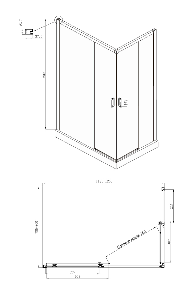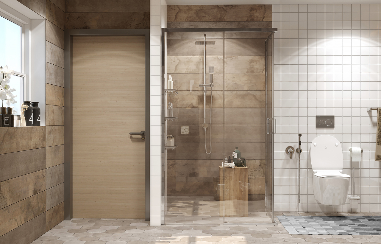 • Душевое ограждение устанавливается в облицованный керамической плиткой угол ванной комнаты.
