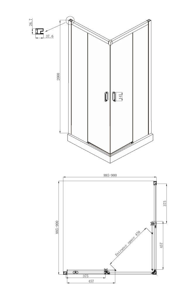 • Душевое ограждение устанавливается в облицованный керамической плиткой угол ванной комнаты.