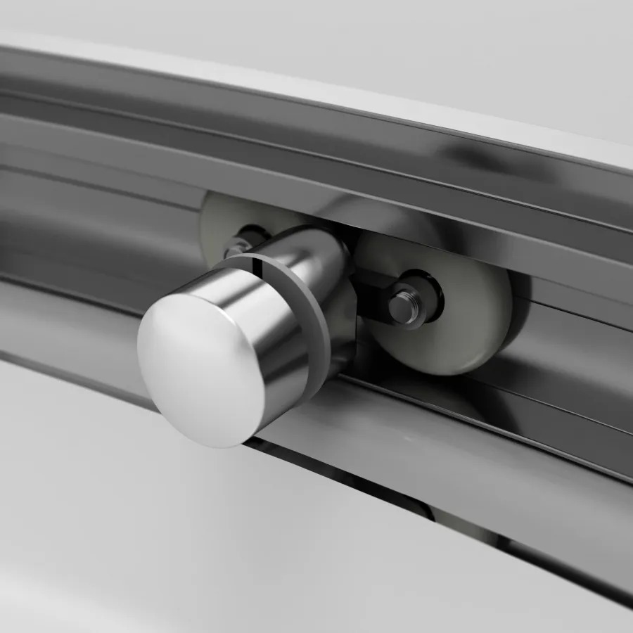Внутреннее пространство на 15% больше, чем у стандартных моделей. Увеличенный вход и внушительная высота профиля 1900 мм – с заботой о людях с высоким ростом. Двойные стальные ролики на металлоподшипнике обеспечивают надежность и плавный ход двери. Профиль хром глянцевый. Стекло прозрачное.