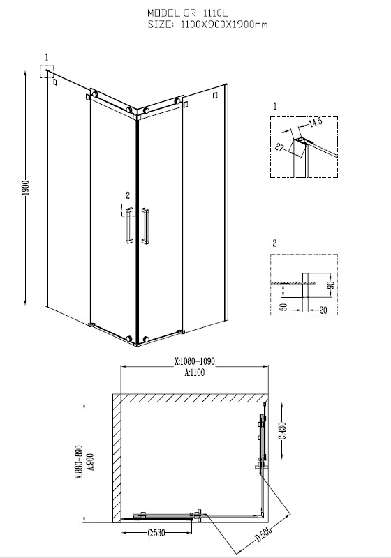 Душевой уголок Grossman Cosmo GR-1110L 110х90 левый двери раздвижные - цена 27550 руб. Оформить заказ и купить душевой угол Grossman Cosmo GR-1110L 110х90 левый двери раздвижные в Москве в нашем интернет магазине можно по тел 8 (919) 991-95-00 или добавив товар в корзину.