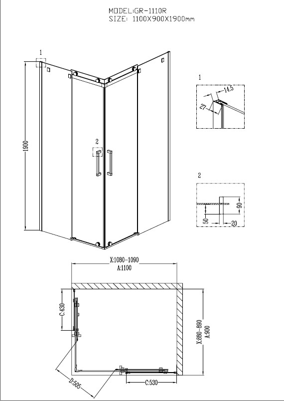 Душевой уголок Grossman Cosmo GR-1110R 110х90 правый двери раздвижные - цена 27550 руб. Оформить заказ и купить душевой угол Grossman Cosmo GR-1110R 110х90 правый двери раздвижные в Москве в нашем интернет магазине можно по тел 8 (919) 991-95-00 или добавив товар в корзину.