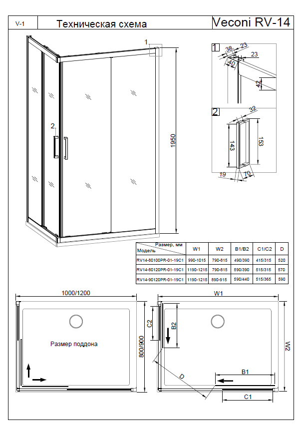 Душевой уголок Veconi RV-14 100x90 черный - цена 35279 руб. Оформить заказ и купить душевой угол Veconi RV-14 100x90 черный в Москве в нашем интернет магазине можно по тел 8 (919) 991-95-00 или добавив товар в корзину.
