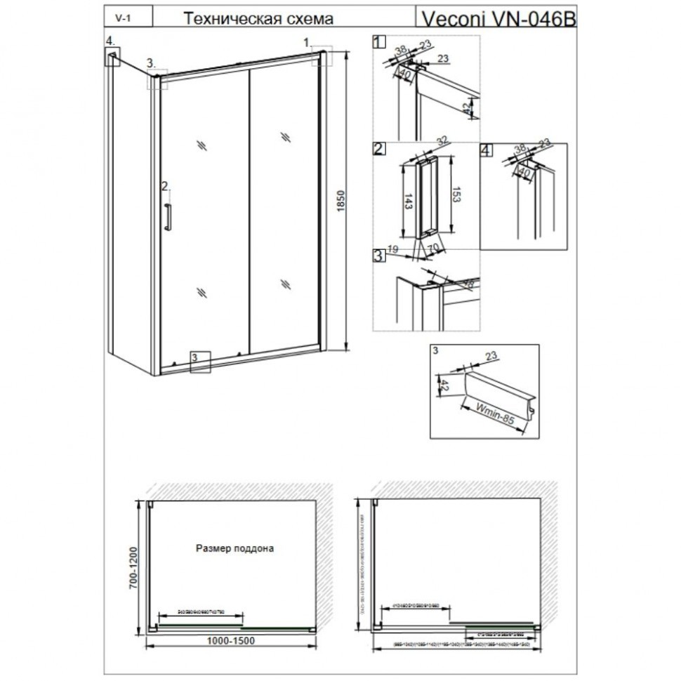 Душевой уголок Veconi RV-046B 120x70 черный - цена 36270 руб. Оформить заказ и купить душевой угол Veconi RV-046B 120x70 черный в Москве в нашем интернет магазине можно по тел 8 (919) 991-95-00 или добавив товар в корзину.