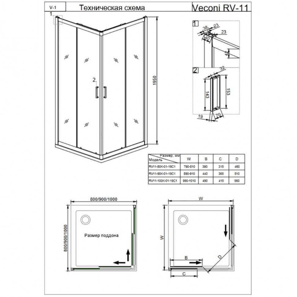 Душевой уголок Veconi RV-11 100x100 хром - цена 42400 руб. Оформить заказ и купить душевой угол Veconi RV-11 100x100 хром в Москве в нашем интернет магазине можно по тел 8 (919) 991-95-00 или добавив товар в корзину.