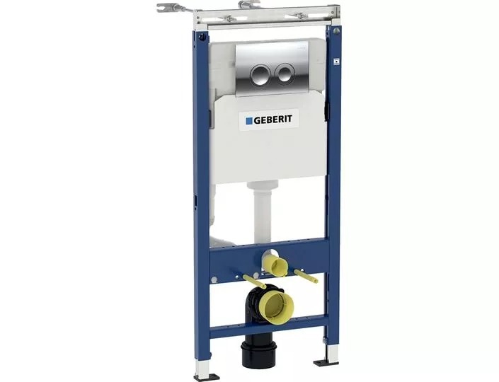 Инсталляции Geberit Delta Plattenbau выдерживают статическую нагрузку 400 кг — это в разы больше потенциальной нагрузки, которая будет возлагаться на сантехнику. Стандартное межосевое расстояние под крепёжные шпильки для керамики — 18/23 см — инсталляция Geberit Delta Plattenbau совместима с любыми моделями унитазов.