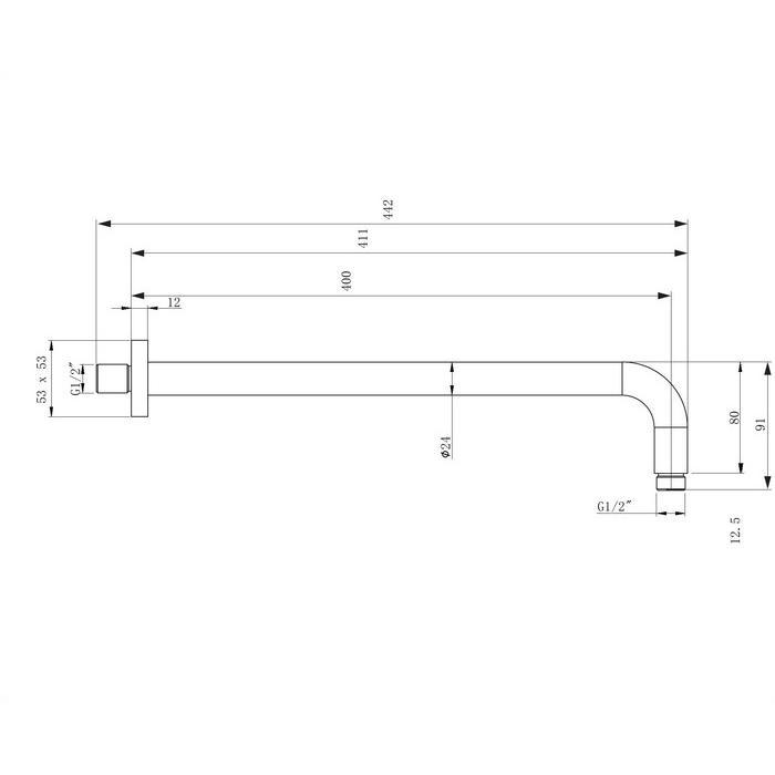 - подключение верхнего душа: 1/2”.