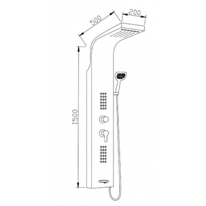 • Водопад, тропический душ, форсунки, латунный хромированный излив, лейка с самоочищающимися форсунками, с 2-х метровым шлангом из нержавеющей стали и поворотным держателем на стену