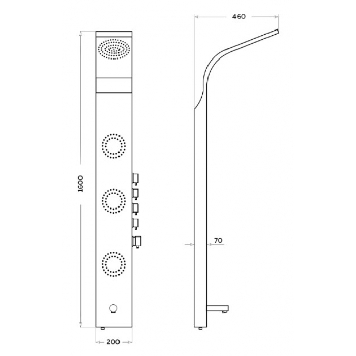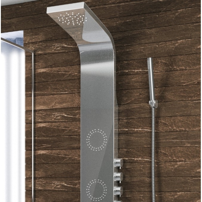 • Душевая панель из нержавеющей стали 1 мм, зеркальная полировка с олеофобным покрытием (не оставляет отпечатков)