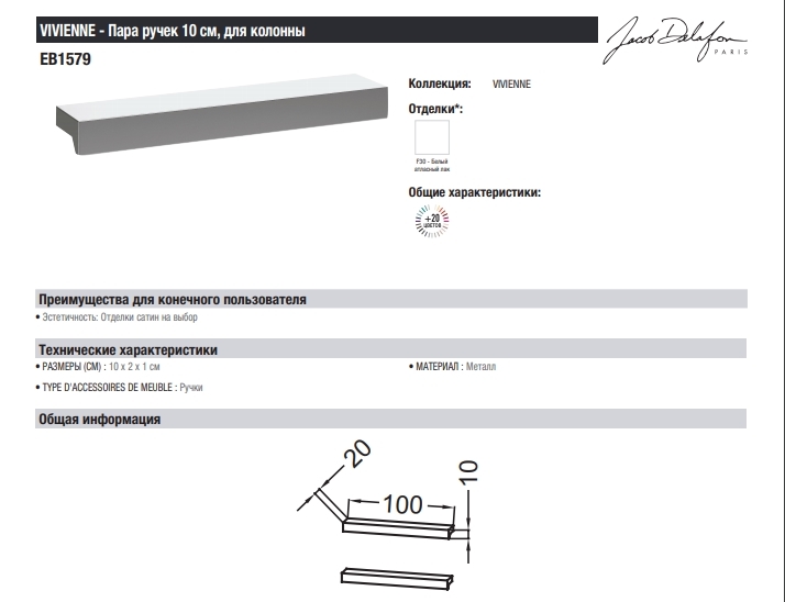 • Артикул EB1579-F30: сатиновый лак белый.