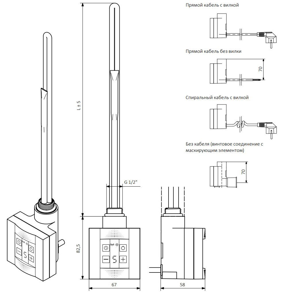 Блок управления полотенцесушителя Terma KTX4 U белый, спиральный кабель с вилкой - КТХ 4 U белый