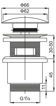 Донный клапан BelBagno с системой "Клик-клак" с переливом, чёрная керамическая крышка - CZR-SAT7-NERO