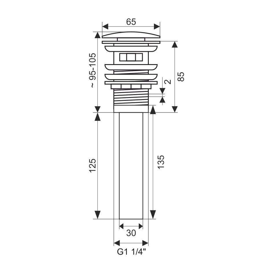 Донный клапан с переливом подходит для раковин, имеющих отверстие для перелива.