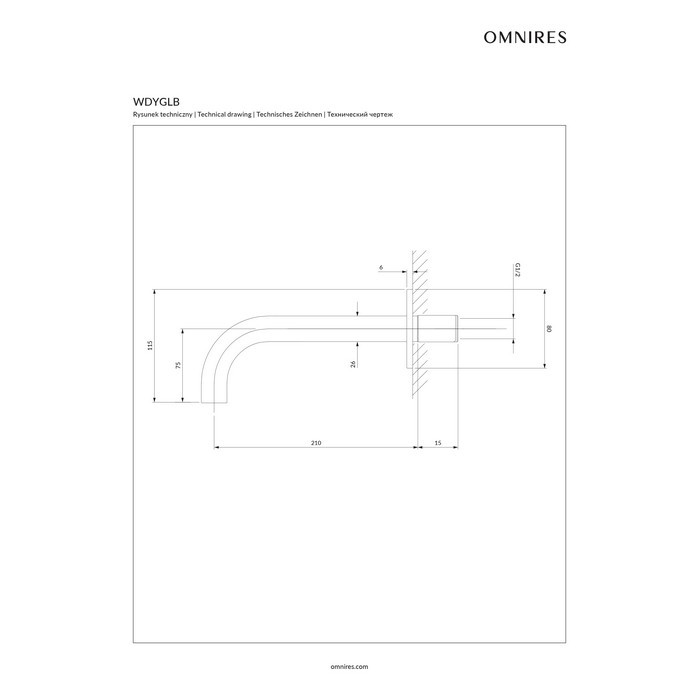 Излив Omnires настенный длина 21 см золото брашированное - WDYGLB