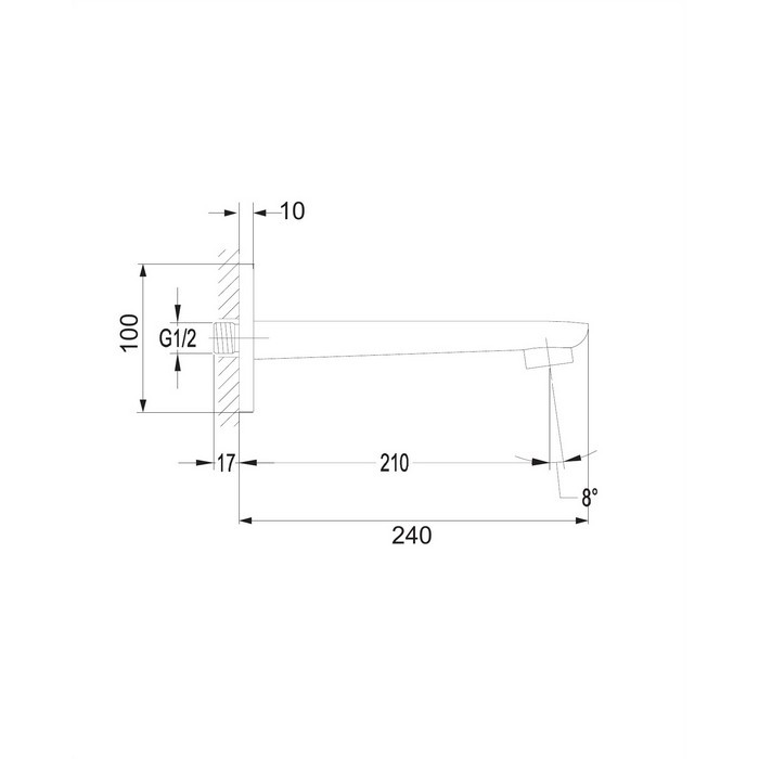 Излив Omnires настенный длина 21 см хром розетка 10x10 см - Z23CR