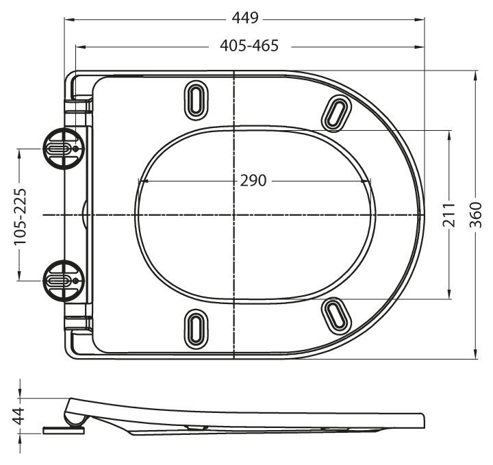 Комплектация: жесткая крышка-сиденье с быстросъемными петлями и микролифтом, инструкция.