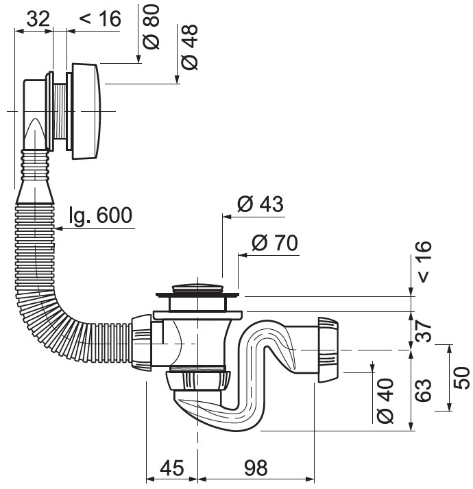 • Донный клапан: полуавтоматический.