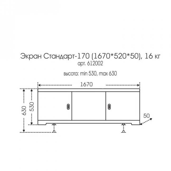 Экран под ванну 170 см.1670*520