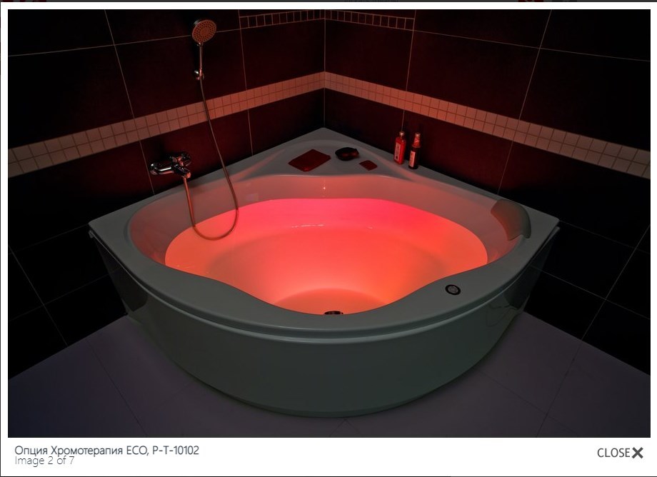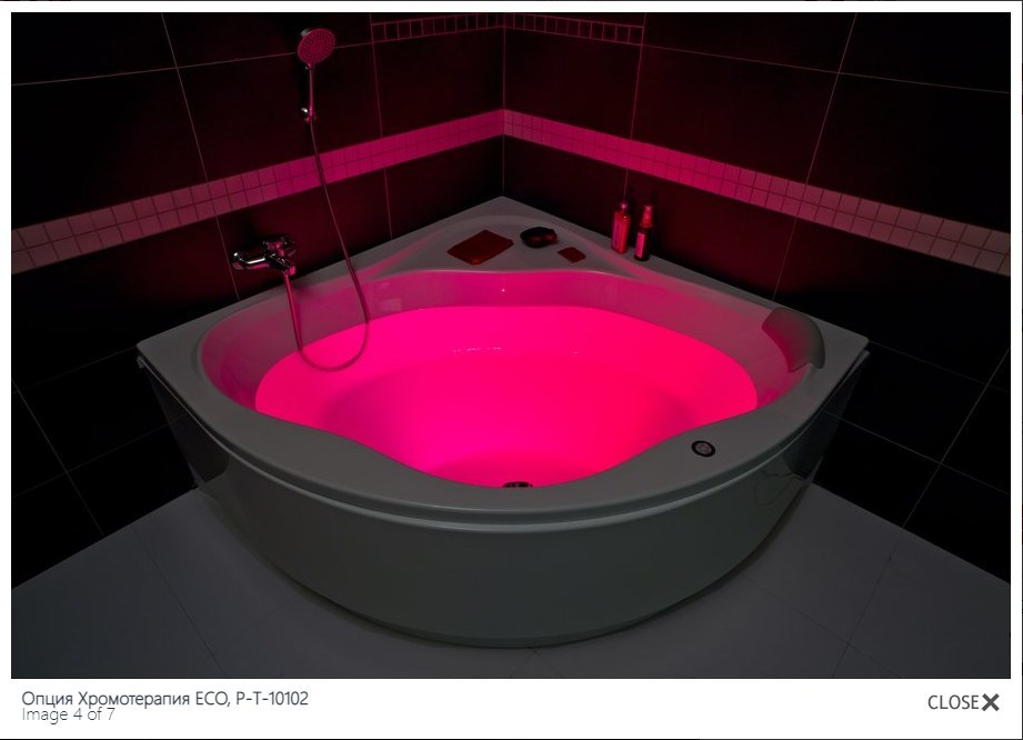 Подводное освещение (Koller, Австрия) с плоским светильником, освещает ванну цветными оттенками или интенсивным белым светом.