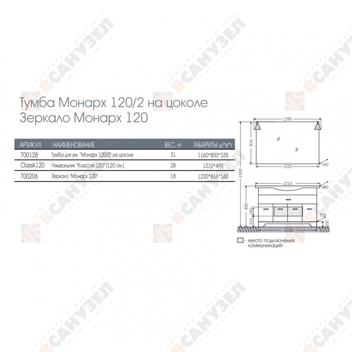 Комплект мебели СанТа Монарх 120/2 - цена 0 руб. Оформить заказ и купить мебель для ванной СанТа Монарх 120/2 в Москве в нашем интернет магазине можно по тел 8 (919) 991-95-00 или добавив товар в корзину.